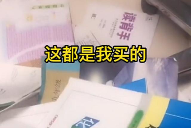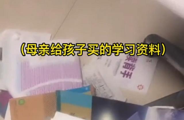 在母亲亲手拍摄的这段视频中,母亲的声音又憔悴又低落,他不断地翻阅着手上那些学习资料,表示这些都是她出钱给儿子买的练习册。