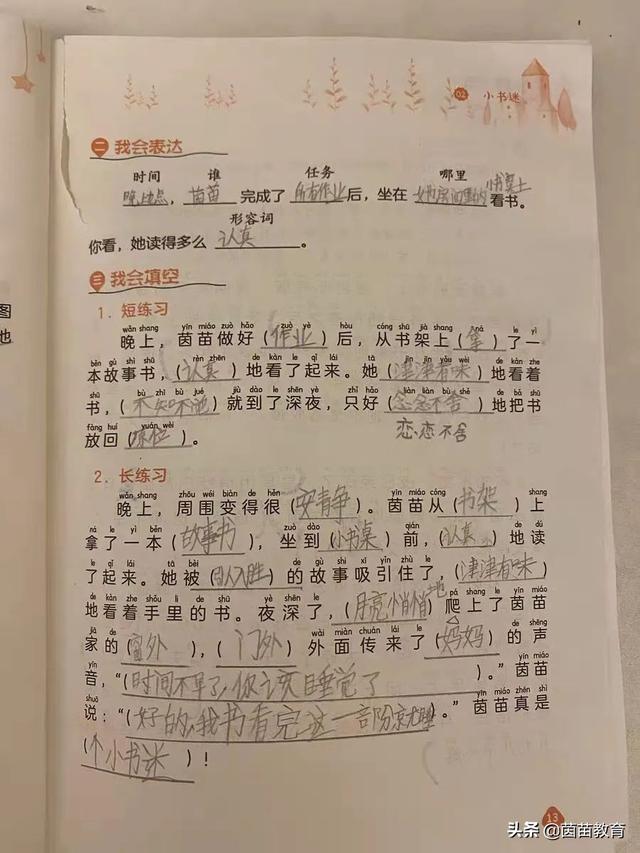 每天朗读课文、课外书和小学生看图写话,